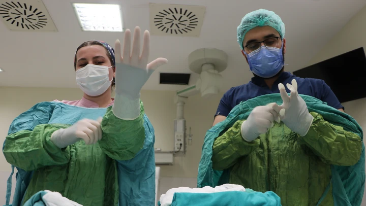 Hastanede 4 yıldır çalışan Muhammet Enes Çolak da ameliyathane ortamında tanıştığı eşiyle mutlu birliktelik sürdürdüklerini anlattı.