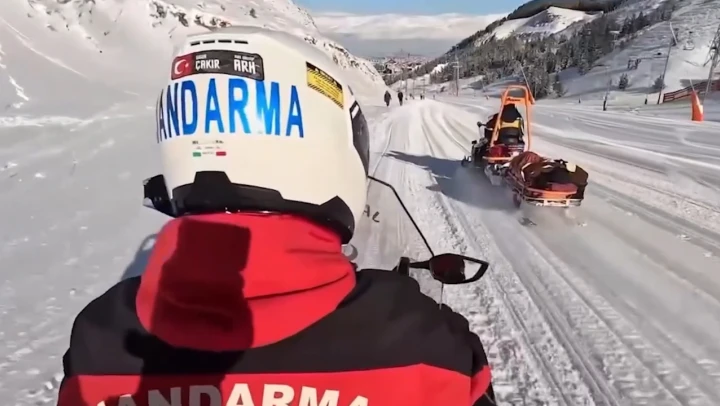 Yerleşim yerine ulaşan tim, hastayı kar motorlarının arkasına bağladıkları kızaklı sedyeyle alarak kayak merkezindeki sağlık ekiplerine ulaştırdı.