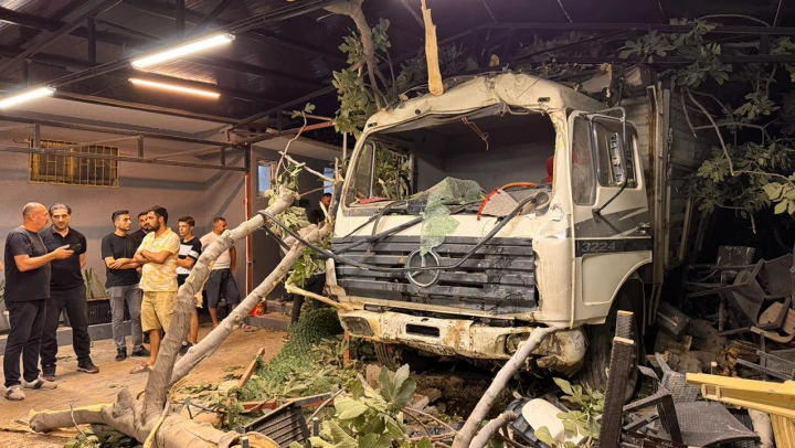 Hatay'ın merkez Antakya ilçesinde hurda yüklü kamyonun restoran bahçesine düşmesi sonucu yaralanan 2 kişi hastaneye kaldırıldı.