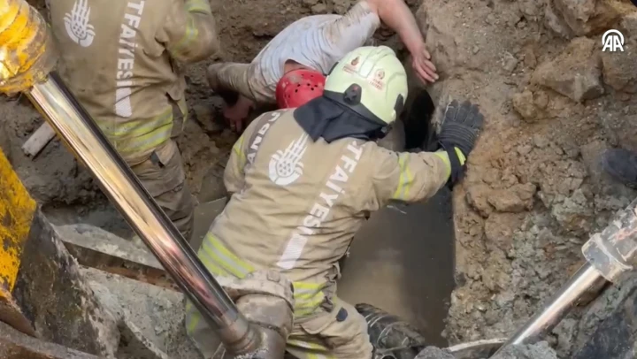 İstanbul Bayrampaşa'da kanalizasyon çalışması sırasında göçük altında kalan işçinin kurtarılması için çalışmalar sürüyor.