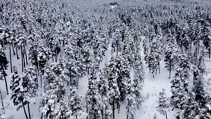 Türkiye'nin gözde turizm merkezlerinden Kars'ın Sarıkamış ilçesinde karla kaplanan ormanlık alanlar dronla görüntülendi.