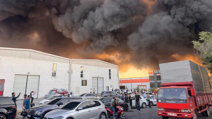 Kayseri Organize Sanayi Bölgesi'nde (OSB) keçe fabrikasında çıkan yangına müdahale ediliyor.