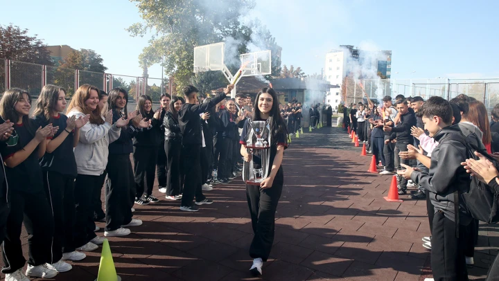 Şampiyona sonrası memleketine dönen Uzunçakmak, okuldaki arkadaşları ile öğretmenleri tarafından konfetiler ve alkışlar eşliğinde tezahüratlarla karşılandı.