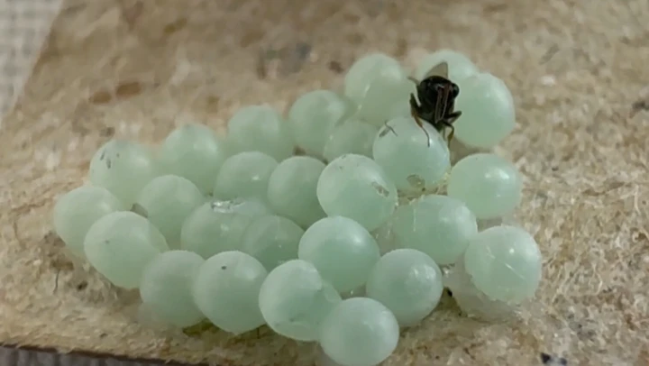 Kahverengi kokarcaları iklim odalarında üretip yumurtalarını toplayarak stokladıklarını aktaran Gümüş, bu yumurtaları daha sonra parazitlediklerini vurguladı. Gümüş, yumurtaları parazitleyen samuray arılarının bakımlarını yaptıklarına işaret ederek, 'Bunları kahverengi kokarca yumurtaları üzerinde üretiyoruz. Sadece beslenmeleri için 3 günde bir bal değişimi yapıyoruz. Samuray arıları bal ile besleniyorlar.' dedi.