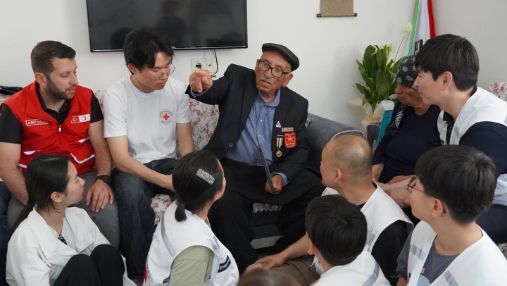 Kore Kızılhaçı gönüllüleri, Kahramanmaraşlı 92 yaşındaki Kore gazisi Kadir Çolak'ı evinde ziyaret etti.
