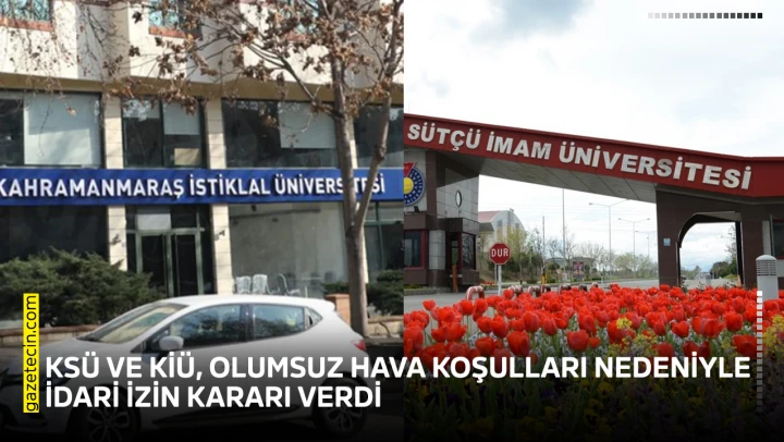Kahramanmaraş Sütçü İmam Üniversitesi (KSÜ) ve İstiklal Üniversitesi beklenen kar yağışı ve olumsuz hava koşulları nedeniyle hamile, engelli, 60 yaş üstü, ile anasınıfı çağında çocuğu olan personele idari izin verildiğini duyurdu.