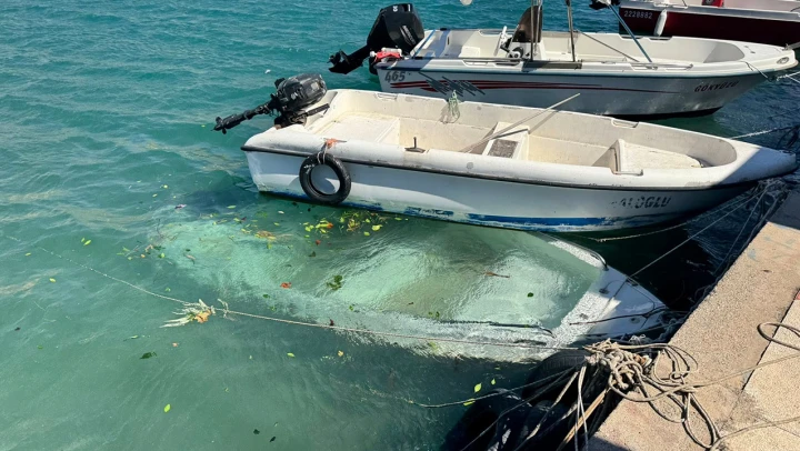 Mersin'in Aydıncık ilçesinde etkili olan fırtına nedeniyle limanda kıyıya bağlı 2 tekne battı.