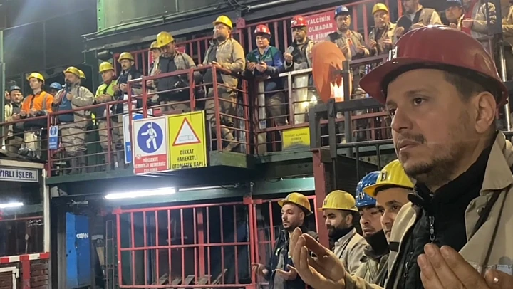 Zonguldak'ta maden işçileri, Kahramanmaraş merkezli 6 Şubat 2023'te yaşanan depremlerde yaşamını yitirenleri dualarla andı.