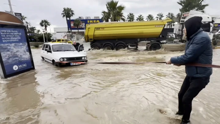 Belediye ekipleri yoldaki mazgalları açmak için çalışma başlatırken, araçlar da çekici ve vatandaşların yardımıyla yol kenarına çekildi.