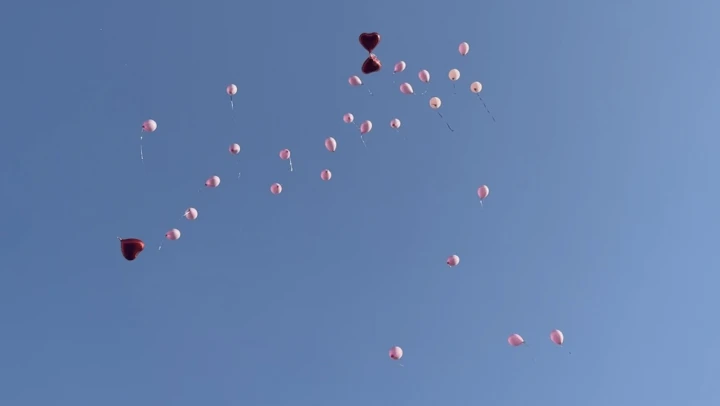 Meme kanserini yenen kadın için gökyüzüne pembe balonlar bırakıldı