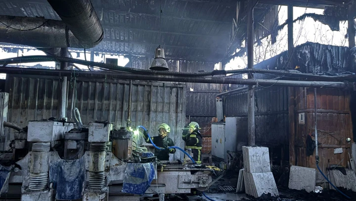 Mermer fabrikasında çıkan yangın söndürüldü