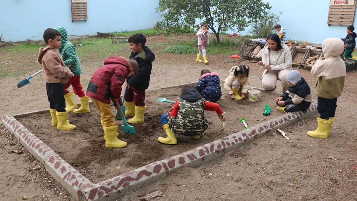 Sınıf içi uygulamaları bahçeye taşıdıklarını dile getiren Uğurlu, şöyle konuştu: 'Çocuklar ilgi alanlarına göre istediği merkezde oynayabiliyor. Sanat etkinliği merkezimiz var. Burada sebzelerin boyasını çıkararak sanat etkinlikleri gerçekleştiriyoruz. Bostanımızda ekim ve dikim çalışması yapıyoruz. Daha sonra çocuklar olgunlaşan ürünleri toplayarak kendi yiyeceklerini hazırlayabiliyorlar. Dene-yap atölyemizde de doğadaki atık malzemeleri toplayarak deneyler gerçekleştiriyoruz. Çocukların doğada zaman geçirmesinin gelişimlerini olumlu yönde etkilediğini gözlemledim.'