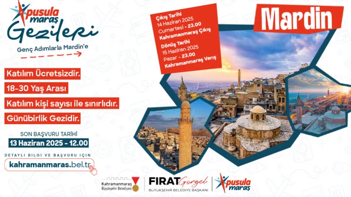 Büyükşehir Belediyesinin gençlere yönelik düzenlediği Pusula Maraş Gezileri'nin ilk durağı Mardin olacak. 14 – 15 Haziran tarihlerinde günübirlik gerçekleştirilecek geziye Büyükşehir'in internet adresinden çevrimiçi başvuru yapılabiliyor.