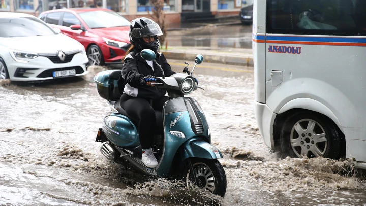 Adana'da etkili olan sağanak nedeniyle bazı cadde ve sokaklarda su birikintileri oluştu.