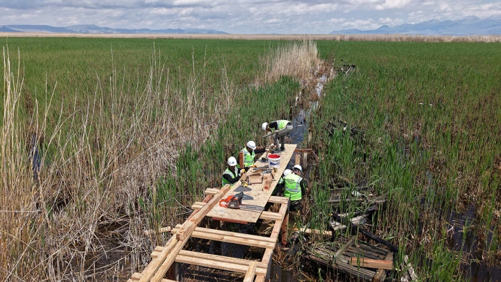 Sazlık alanının doğal dokusuna uygun şekilde sürdürülen ahşap yol yapım çalışmalarıyla ziyaretçilerin bölgeyi daha yakından keşfetmesi sağlanacak.