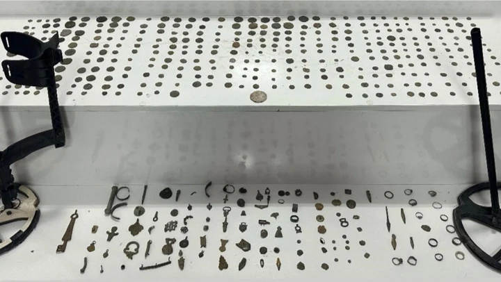 Operasyonda 2 şüpheli yakalandı. Evde yapılan aramada, 366 sikke, 115 tarihi obje, 3 arama dedektörü ile çeşitli kazı malzemeleri ele geçirildi.