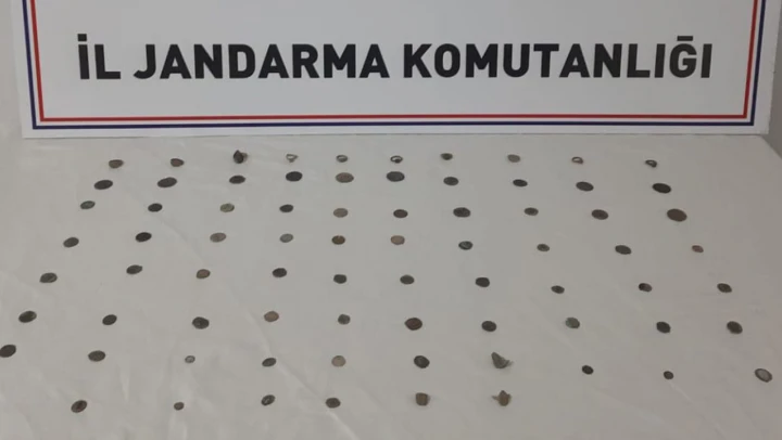 Şüphelinin ikametinde ve üzerinde yapılan aramada, Roma ve Bizans dönemlerine ait olduğu değerlendirilen 62 sikke ve 14 tarihi obje ele geçirildi.