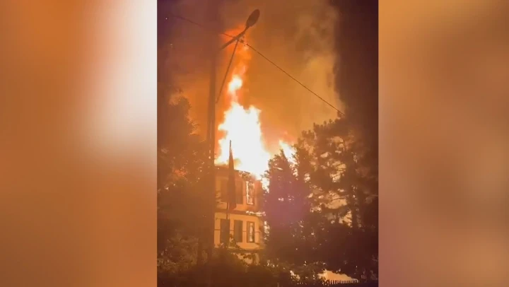 Bolu'nun Mudurnu ilçesinde çıkan yangında tarihi konak kullanılamaz hale geldi.