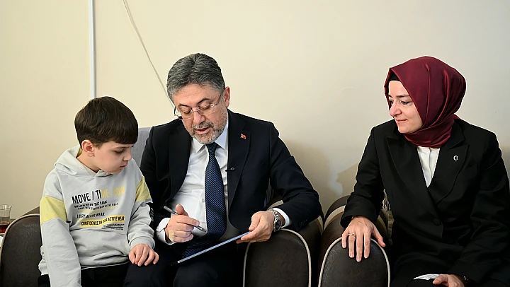 Yumaklı, Hatay'daki depremde anne ve babası ile kardeşini kaybettiği binanın enkazından çıkarıldıktan sonra bir bacağı ampute edilen 8 yaşındaki Ahmet Yıldırım'ı, babaannesiyle yaşadığı 100. Yıl Mahallesi'ndeki evinde ziyaret etti.