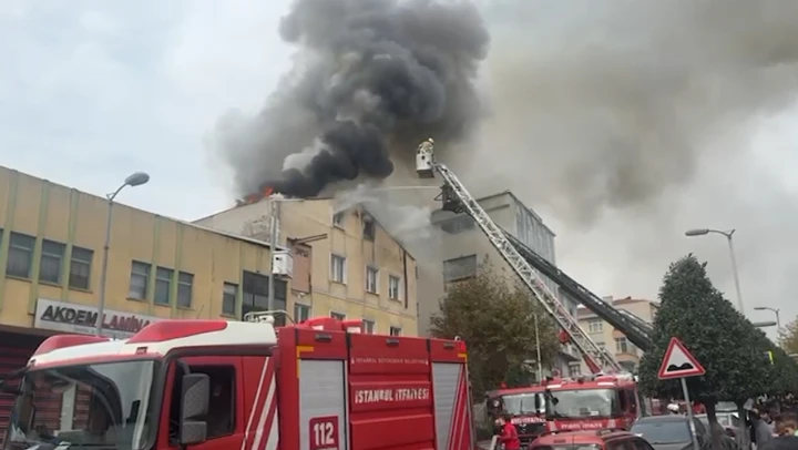 Güngören'de 3 katlı tekstil fabrikasında çıkan yangına itfaiye ekipleri müdahale ediyor.