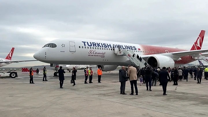 THY, 100 bin çalışanının fotoğrafıyla giydirdiği 500'üncü uçağını tanıttı