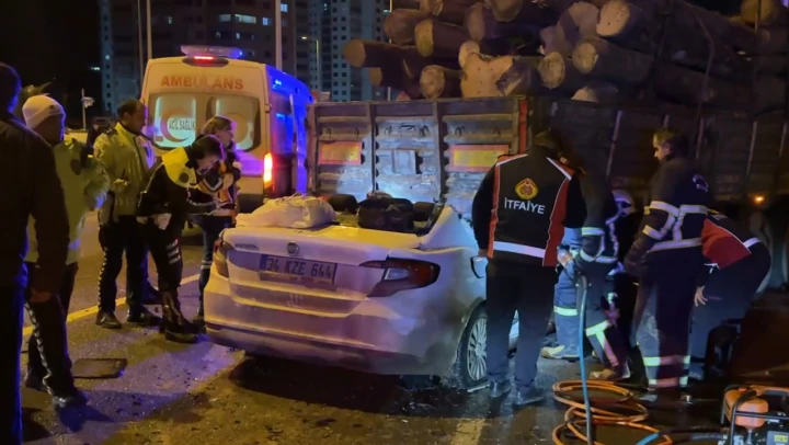 Tıra çarpan otomobildeki 1 kişi öldü, 2 kişi yaralandı