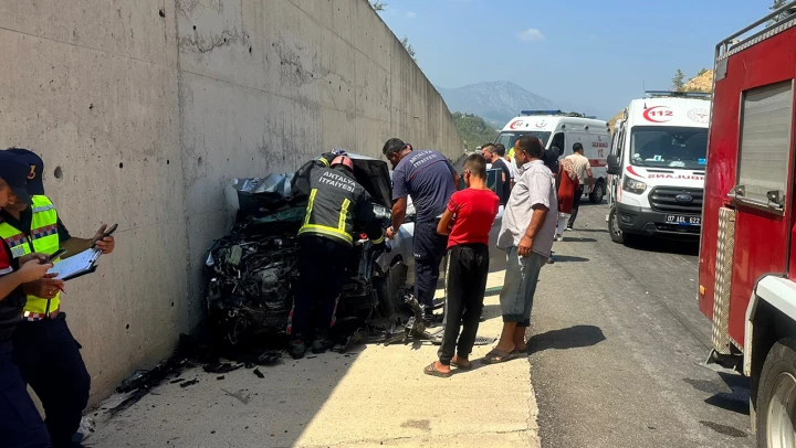 Antalya'da tırın dorsesine çarpan otomobildeki 1'i ağır 3 kişi yaralandı.