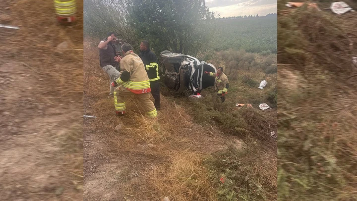 Çarpışmanın etkisiyle yol kenarındaki otluk alana yuvarlanan otomobilin sürücüsü ağır yaralandı.