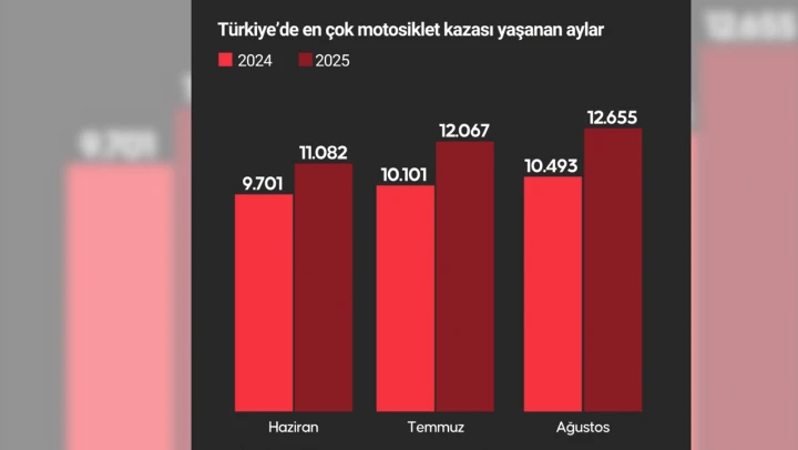 Emniyet Genel Müdürlüğü Trafik Başkanlığı ile Jandarma Genel Komutanlığı Trafik Daire Başkanlığının verilerinden yaptığı derlemeye göre, geçen yılın ilk 8 aylık döneminde 65 bin 291 ölümlü/yaralanmalı motosiklet kazası meydana geldi. En çok motosiklet kazası yine 10 bin 493 ile ağustos ayında yaşandı. Bunu 10 bin 101 ile temmuz, 9 bin 701 ile haziran ayı takip etti.