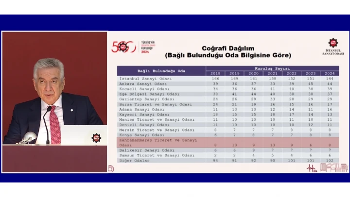 'Türkiye'nin 500 Büyük Sanayi Kuruluşu 2024' araştırmasının sonuçları, İSO Yönetim Kurulu Başkanı Erdal Bahçıvan tarafından açıklandı.