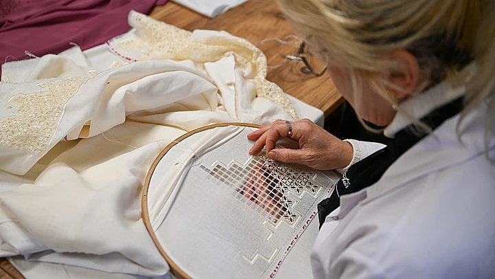 Geleneksel olarak beyaz kumaş üzerine beyaz iplikle uygulanan, ipliklerin çekilip kesilmesiyle desenlerin oluşturulduğu Antep İşi Nakışı, bölgede yüzyıllardır kuşaktan kuşağa aktarılan köklü bir nakış tekniği olma özelliğini taşıyor.