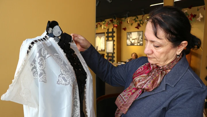 Daha önce çeyizlere yaptıkları desenleri kıyafet, aksesuar ve hediyelik eşyalara ilmek ilmek işleyen kadınlar, Antep işi nakışını yeni tasarımlarla gelecek kuşaklara aktarıyor.