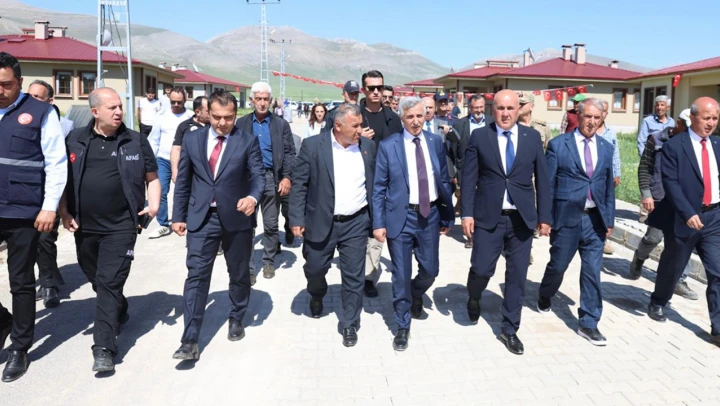 Ortaören Mahallesi'nde köy konutlarına kavuşan Şazenuş ve Şefika Ekici çiftini evlerinde ziyaret eden Vali Ünlüer, ailenin sevincine ortak oldu.