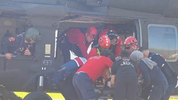 Alanın sarp ve kayalık olması nedeniyle kazazedelerin taşınması için Jandarma Filo Komutanlığından helikopter talep edildi.