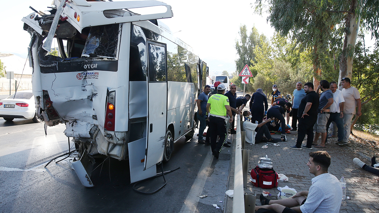Konaklı Mahallesi D-400 kara yolunda sürücüleri öğrenilemeyen 07 ACU 586 plakalı belediyeye bağlı toplu taşıma aracı midibüs ile bir tur şirketine ait 21 AHD 934 tur midibüs çarpıştı.