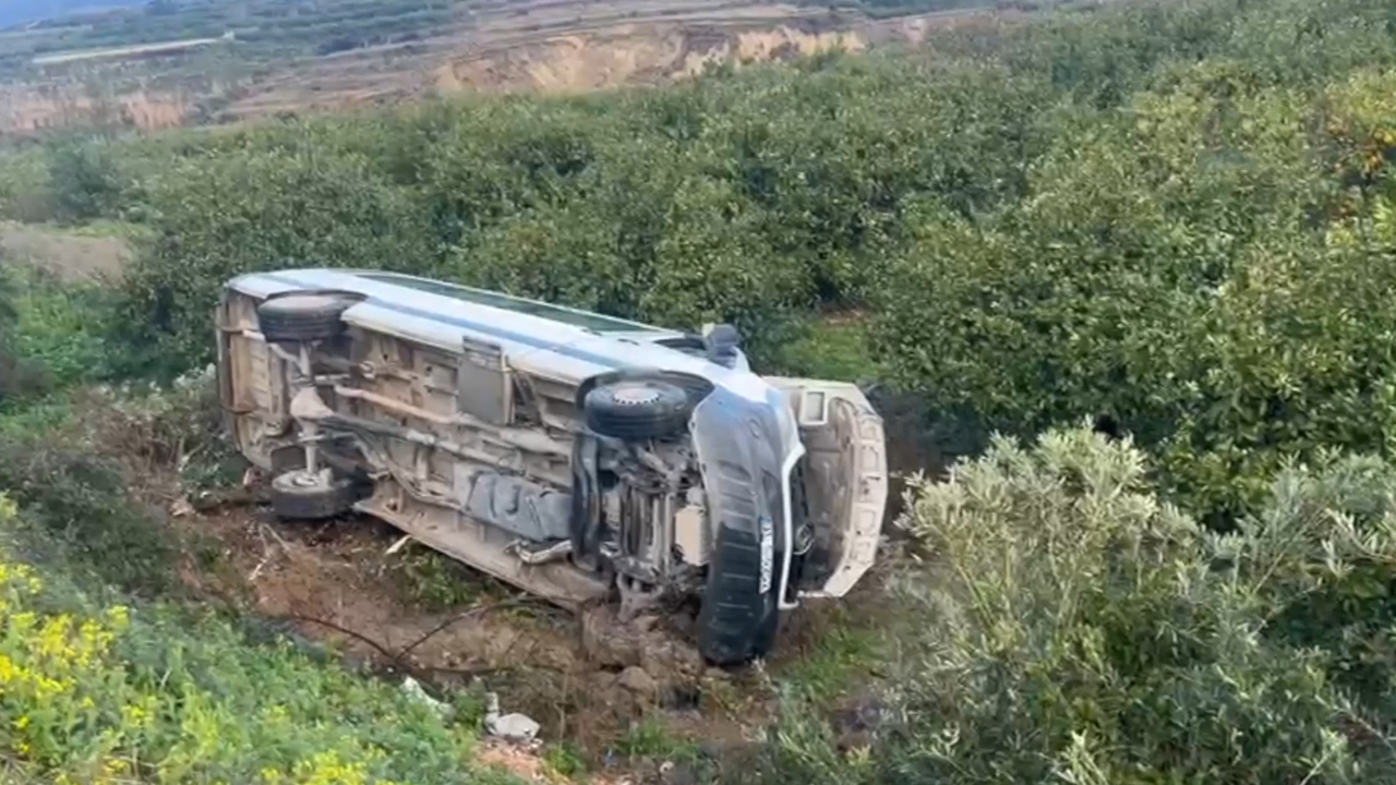 Sürücüsünün ismi öğrenilemeyen 31 S 9252 plakalı servis minibüsü, Mızraklı Mahallesi'nde yol kenarındaki ağaçlık alana devrildi.