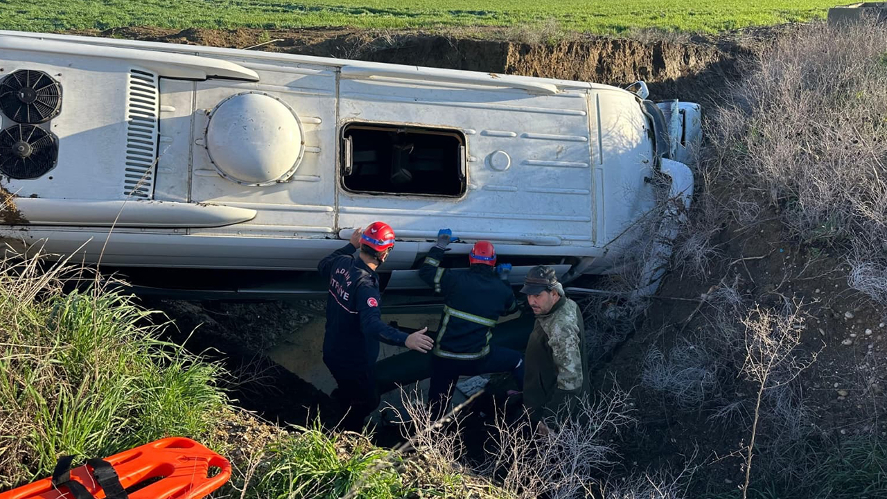 Üçdutyeşilova Mahallesi'nde öğrencileri taşıyan okul servisi, sürücünün direksiyon hakimiyetini kaybetmesi sonucu yol kenarındaki dereye düştü.