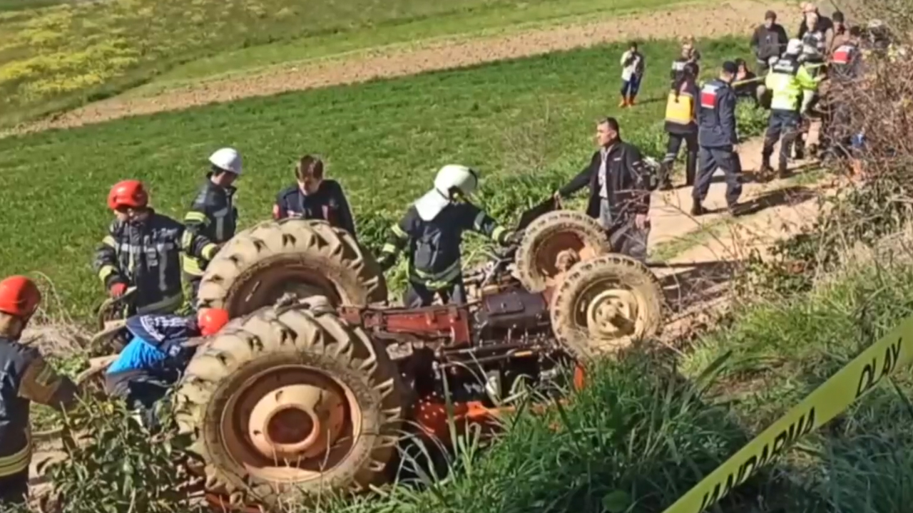 Mülkişeyhsuvar Mahallesi'nde Himmet İ. (62) idaresindeki 54 DE 752 plakalı traktör, geri manevra sırasında devrildi.