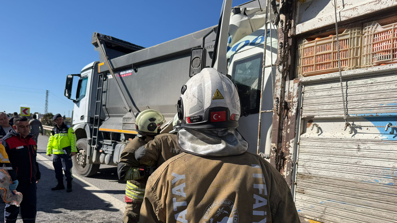 Sürücüleri ve plakaları henüz belirlenemeyen iki kamyon, Çankaya Mahallesi mevkisinde çarpıştı.