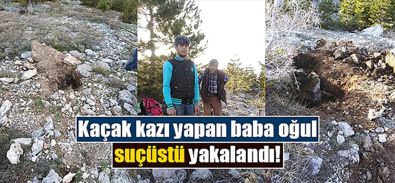 Antalya'nın Alanya ilçesinde kaçak kazı yapan baba ve oğul suçüstü yakalandı.