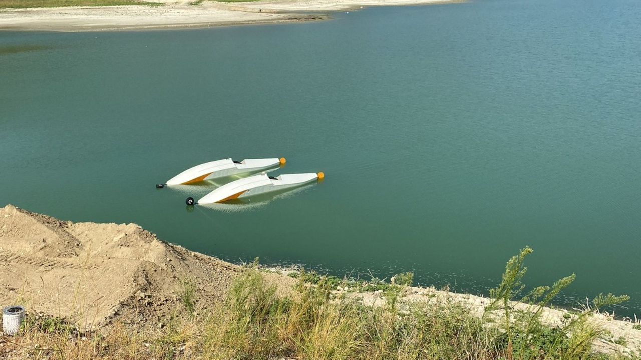 Elsazı köyü Karacaören Barajı Gölü'nde dün su alma sırasında kalkış yapamayan uçak kırıma uğramış, içerisindeki 2 pilot, bir çiftçi tarafından balıkçı tekneleriyle kurtarılmıştı.