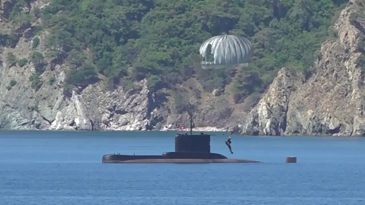 Denizaltı tahliye eğitimleri kapsamında kazazedeler, serbest çıkış faaliyeti gerçekleştirerek su yüzüne çıkarıldı.