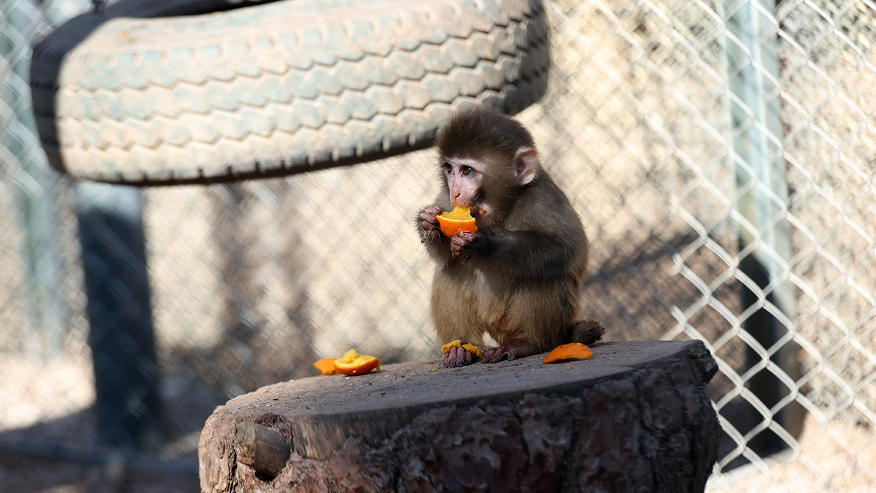 Yaşam parkının veteriner kliniğinde röntgeni çekilen, kan örnekleri alınan, iç ve dış parazit incelemeleri tamamlanan "Portakal", kentte daha önce kendisi gibi çeşitli operasyonlarda ele geçirilen 4 yavru ve 2 yetişkin maymunun bulunduğu kafese yerleştirildi.