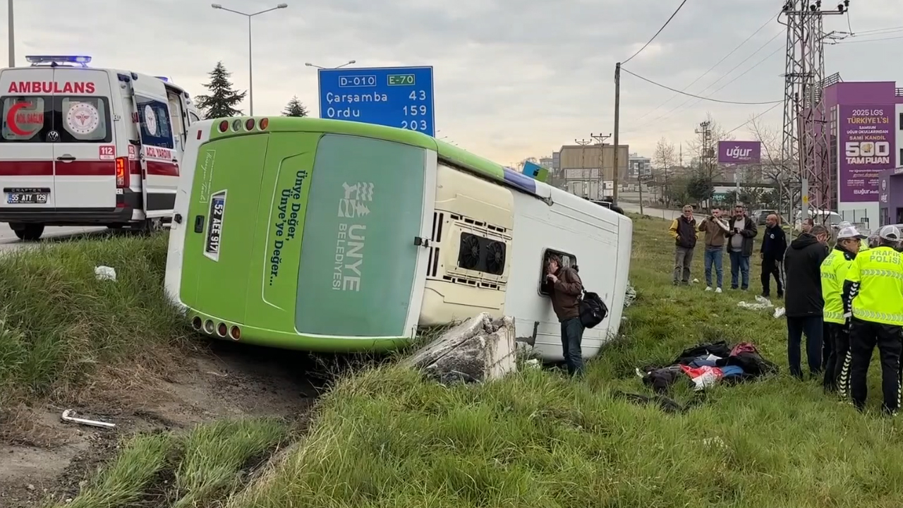 İstanbul'dan Ordu'nun Ünye ilçesine giden, sürücüsü henüz öğrenilemeyen 52 AE 917 plakalı Ünye Belediyesine ait bir midibüs, otogar yakınlarında devrildi.
