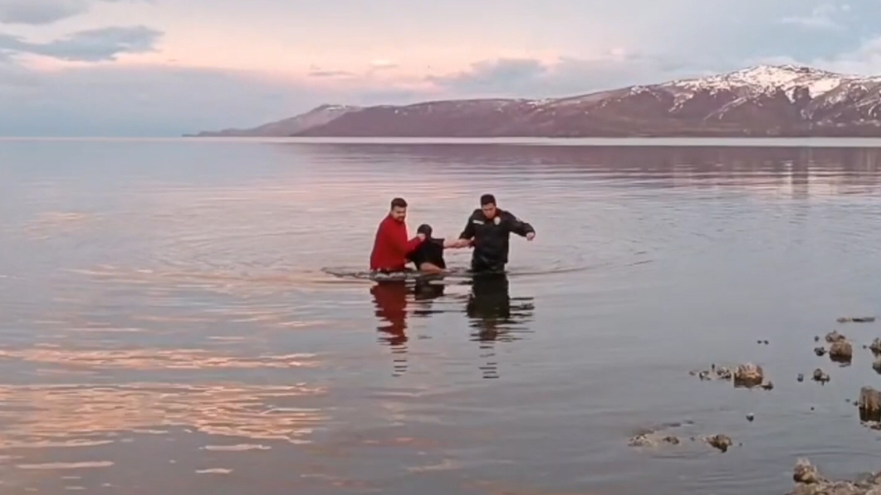 Saray Mahallesi'nde kıyafetleriyle Van Gölü'ne giren E.D'yi görenler, durumu 112 Acil Çağrı Merkezi'ne bildirdi.