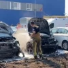 İlçedeki bir alışveriş merkezinin açık otoparkında henüz belirlenemeyen nedenle yangın çıktı.