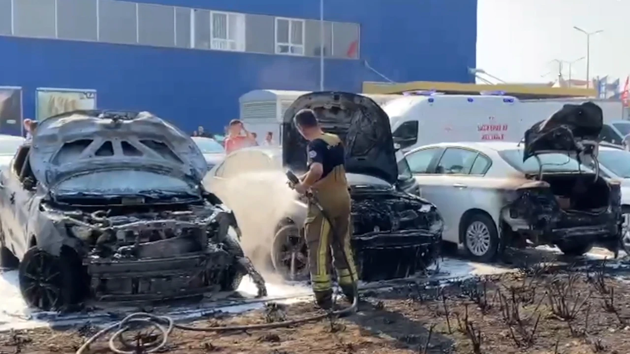 İtfaiye ekiplerinin müdahalesiyle söndürülen yangında 7 aracın kullanılamaz hale geldiği, 1 aracın da hafif hasar aldığı belirlendi.