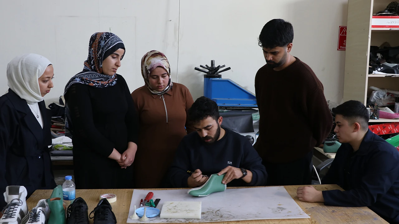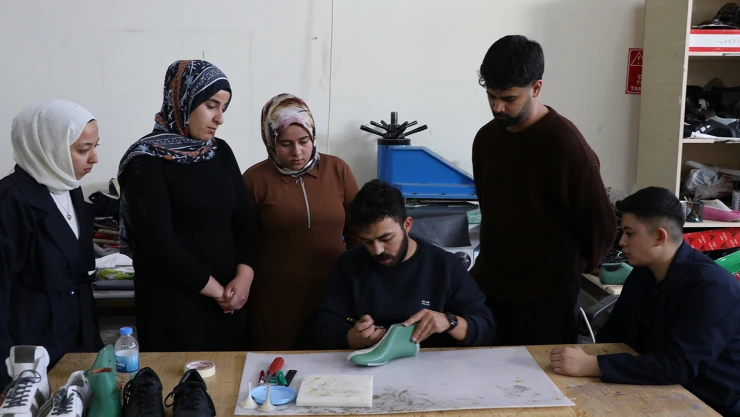 Naci Topçuoğlu Meslek Yüksekokulu Ayakkabı Tasarım ve Üretim Bölümü öğrencisi Ayşe Göçmen ise lisede de aynı bölümü okuduğunu belirterek, "Nuri hocamdan ilham alıyorum. Kendisi bize her türlü destek oluyor. Burada çizim, tasarım ve üretim yapıyoruz. Yemeni, spor ve bot ayakkabıları üretiyoruz. Mesleğimde çok iyi yere gelmek istiyorum." dedi.