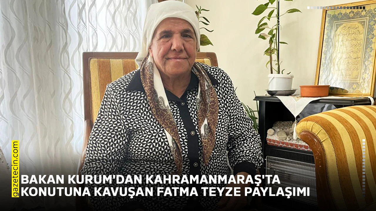 Yeni evlerine taşınan vatandaşlardan biri de Kahramanmaraş merkezli 6 Şubat 2023'teki depremlerde kardeşi ile eniştesini kaybeden 4 çocuk annesi 66 yaşındaki Fatma Yönder oldu. Bakan Kurum, Kahramanmaraş'ta deprem konutunu teslim alan Yönder'in görüntülerinin yer aldığı videoyu sosyal medya hesabından paylaştı.
