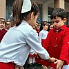 Bakan Tekin, öğrencilerin esnafa bayrak dağıttığı görüntüleri sosyal medya hesabından paylaştı.